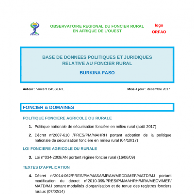 1. Politique nationale de sécurisation foncière en milieu rural (août 2017)