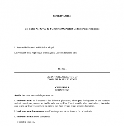 Loi-cadre n° 96-766 du 3 octobre 1996 portant code de l’environnement Côte d'Ivoire